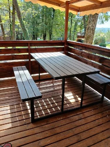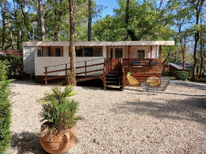 Situé dans un camping 3* du Périgord Noir : Camping familial, calme et ombragé ouvert toute l'année avec piscine chauffée, espace spa, bar, restaurant, mini épicerie. A 20 minutes de la grotte Lascaux, vends mobil home IRM Apollon Riviera, 40m², 6 couchages (possibilité + 2 avec le canapé), 3 chambres dont 1 suite parentale avec WC et douche privée, 1 autre WC et une douche séparée, entièrement équipé (lave vaisselle, frigo, lave linge, plaque induction, TV, chaise hi fi, lecteur DVD....), climatisation, terrasse couverte avec une partie fermée qui sert de salle à manger avec gazinière + placard de rangement et l'autre une table avec bancs extérieurs, un chalet de jardin (environ 5m²) avec l'électricité. Proche de la piscine et de l'aire de jeux.