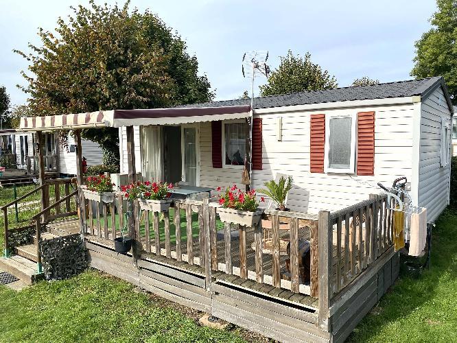 Vends mobil-home en très bon état pour résidence secondaire de marque IRM, modèle Super Titania Regular situé dans un établissement privé en Essonne (91).