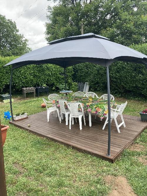 Le mobile home possède deux terrasses, l’une couverte attenant a celui ci et l’autre avec tonnelle et barbecue.