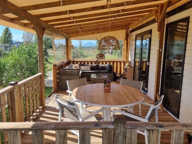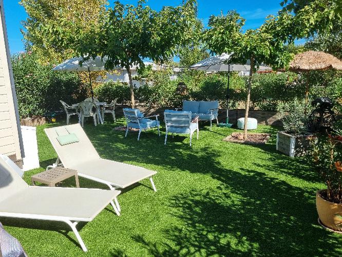 Mobil-home RIDEAU BAHIA 81.2 TR installé neuf en 2022 sur une parcelle de 180 m2 camping résidentiel**** à HYERES, 200 m de la place, 1 km du grand port de Hyères, face aux iles d'or (Porquerolles, Port-Cros, Levant)