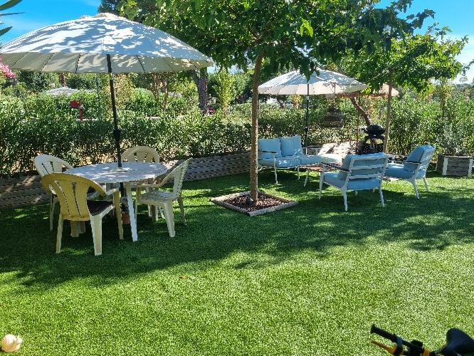 Extérieur : aménagement réalisé par paysagiste (10 000 euros de travaux) : gazon synthétique, jardinières bois, arbres sur la parcelle pour espace ombragé, gravillonnage,... 3 prises extérieures 220 v, robinet d'eau extérieur, ...