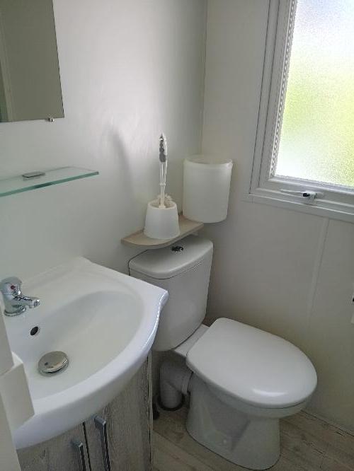 mobil-home confort 3 chambres 2 salles de bains 2 WC chambre parentale 2 autre chambre avec 2 lits terrasse couverte facile pour ce garer mobil-home numéro 65