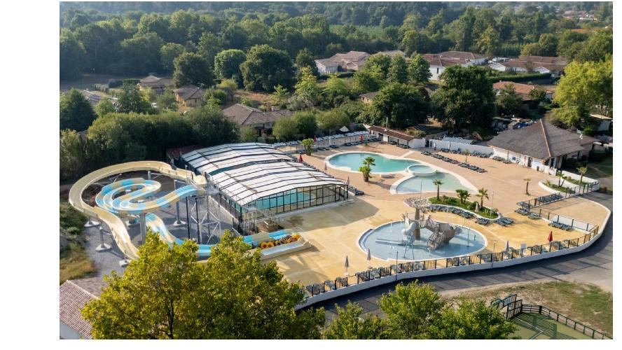 A moins de 10mn de l'océan de la ville de Mimizan. Piscine (1 bassin de nage couvert, 1 grand bassin, 1 petit bassin, 1 pataugeoire), toboggans, jacuzzi, mini-golf, club enfants, club ados, restaurant sur place ou à emporter (P), supérette (P), location de vélos (P), location de barbecues (P), laverie (P) poste de sécurité nocturne.