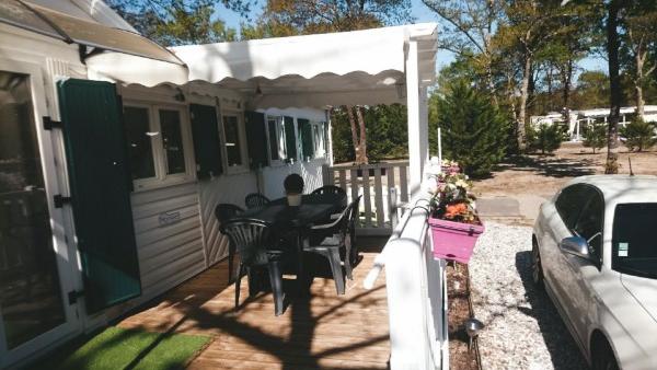 Pour les vacances ou cures thermales, camping 4* loue beau mobil home « Moreva » de 40 m2 avec capacité de 1 à 6 personnes.