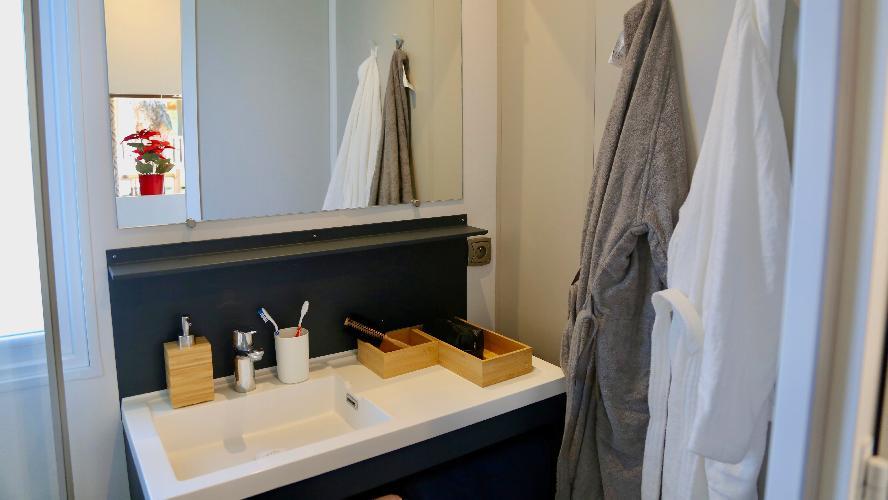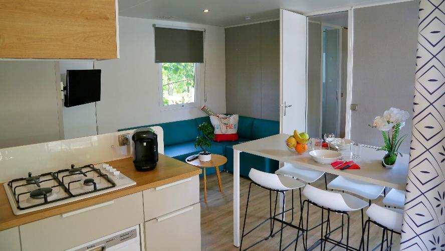 Ce mobil-home haut de gamme 3 chambres et 2 salles de bains a été conçu pour offrir intimité, fonctionnalité et bien-être. Son séjour lumineux, sa cuisine entièrement équipée et ses espaces nuit bien séparés garantissent un confort optimal, même pour les groupes.