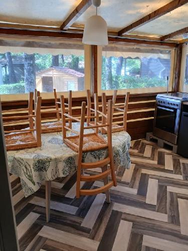 Situé dans un camping du Périgord Noir, proche grotte Lascaux, vends mobil home IRM Apollon Riviera, 40m², 6 couchages (possibilité + 2 avec le canapé), 3 chambres dont 1 suite parentale avec WC et douche privée, 1 autre WC et une douche séparée, entièrement équipé (lave vaisselle, frigo, lave linge, plaque induction, TV, chaise hi fi, lecteur DVD....), climatisation, terrasse couverte avec une partie fermée qui sert de salle à manger avec gazinière, un chalet de jardin (environ 5m²) avec l'électricité.