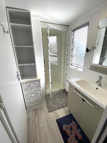 Vends mobil-home en très bon état pour résidence secondaire de marque IRM, modèle Super Titania Regular situé dans un établissement privé en Essonne (91).