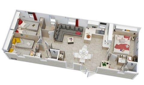 3 chambres dont une parentale avec SDB et wc privatifs, pièce à vivre avec cuisine équipée ouverte sur salle à manger et salon tv... 2 chambres doubles avec leur SDB et wc.