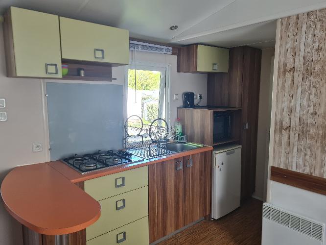 -Mobil home avec tv, frigo, plaque de cuisson à gaz.