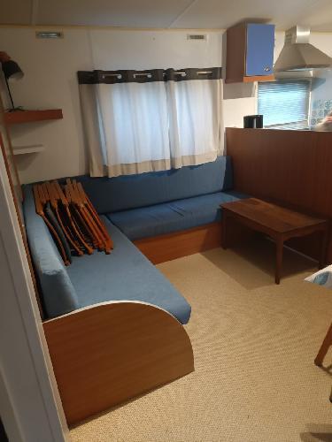 - Une terrasse en bois de 12m² aménagée et fermée à également été ajoutée en extension du Mobile home.