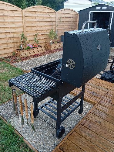 -salon de jardin, parasol déporté, BQQ (avec leurs housses de protection)