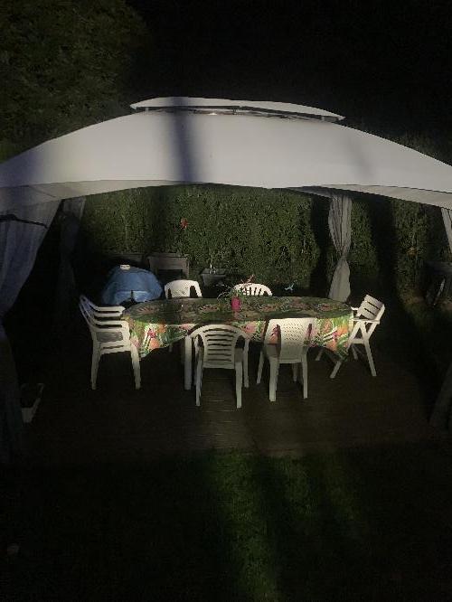 Le mobile home possède deux terrasses, l’une couverte attenant a celui ci et l’autre avec tonnelle et barbecue.